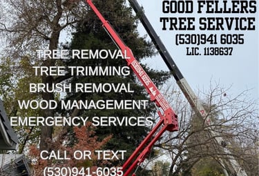 Good Fellers Tree Service – Professional, Safe, and Fire-Ready We specialize in tree removal, trimming, brush clearing, and emergency services with a strong focus on fire safety and prevention. Our licensed team uses advanced lift and crane equipment to manage vegetation and reduce wildfire risks around your property. For insurance documentation, we offer high-resolution drone aerial photos—before and after every job. Call or text (530) 941-6035 for a free estimate and peace of mind.